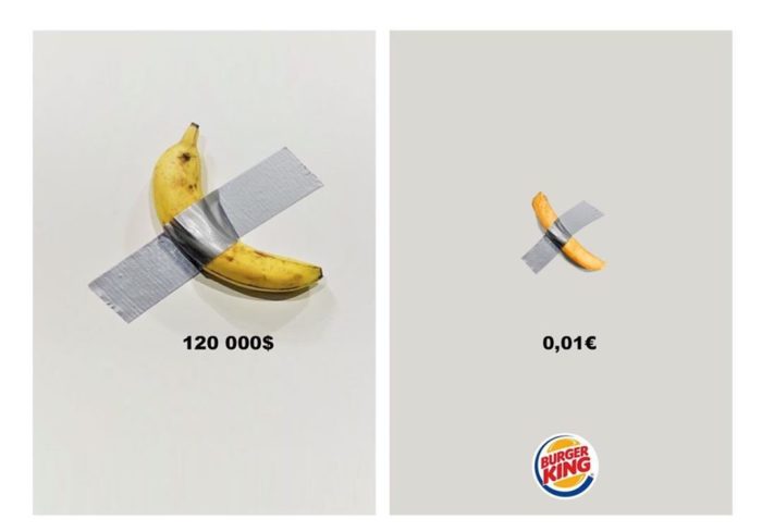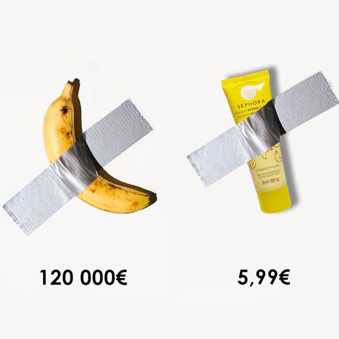 “Comedian” é, assim como “America”, uma crítica ao mercado de arte. O que faz a peça “valer” mesmo é o seu certificado de autenticidade, que vem com instrução de como prender a fruta in natura na parede – o que deve acontecer com uma certa frequência. Confira alguns memes e anúncios de marcas que se aproveitaram da situação.