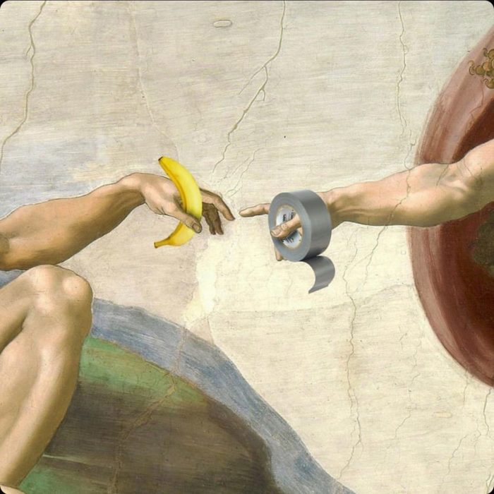 Duas intervenções igualmente polêmicas aconteceram no sábado (7/12): um artista chamado David Datuna retirou a banana da parede e a comeu em frente às câmeras daqueles que estavam presentes na “fila da banana”. “Estava com fome”, disse ele, que postou o vídeo da performance artística, chamada de “Hungry Artist”, em seu perfil no Instagram. Em seguida, no espaço vazio, apareceu uma frase: “Epstein não se matou” – que logo foi apagada da parede. A banana foi então substituída. E a internet adorou o tema: a banana virou meme, e foi reproduzida em dezenas de versões; a maioria delas reunidas no perfil @cattelanbanana.