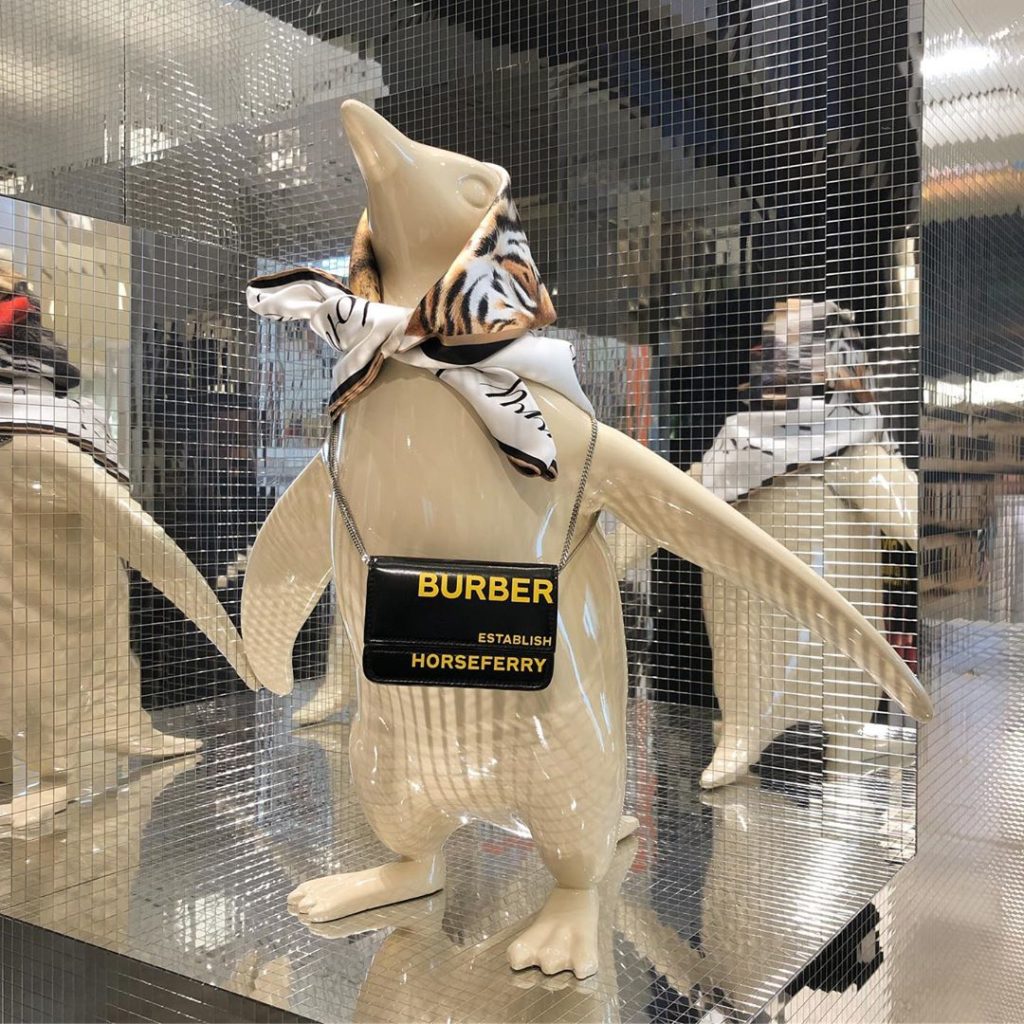 O espaço Burberry faz referências às aventuras e descobertas feitas por clientes da marca de luxo, homenageando principalmente os viajantes polares. Resgatam também o logo da marca de um cavaleiro montado em um cavalo e o brasão da família do fundador Thomas Burberry: um unicórnio. Assim, a Selfridges Corner Shop é invadida por uma atmosfera de ambiente gelado, com neve, trenós e principalmente animais polares. Alguns QR Codes espalhados pela pop-up dão vida a pinguins de realidade aumentada, cenário perfeito para selfies.