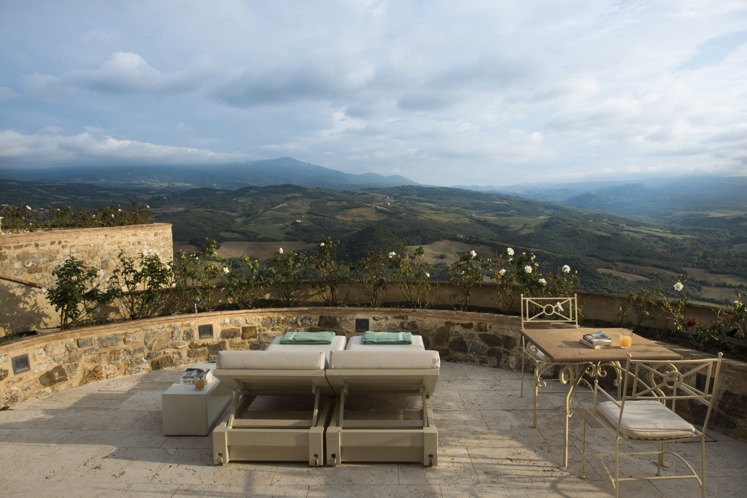 E a própria chegada ao local é memorável, uma vez que pode ser feita por helicóptero, a partir do aeroporto de Florença – são 20 minutos de conforto e vistas aéreas do que está para ser vivenciado em terra firme nos dias que se seguem. Dentre os 45 quartos e suítes, alguns contam com afrescos e teto de carvalho e um tem o título de maior suíte da região da Toscana, com 310 m², dois andares e piscina privativa.