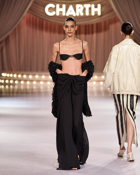 A marca mineira Charth apresentou sua nova coleção, inspirada no glamour da Era de Ouro de Hollywood, na noite da última segunda-feira (27), em São Paulo. Esse foi o sétimo desfile de Nastácia Schacht, fundadora e diretora criativa da etiqueta, na cidade. O evento contou com um público de mais de 800 convidados, cujos olhos foram fisgados pela entrada inicial da atriz Camila Queiroz grávida na passarela.