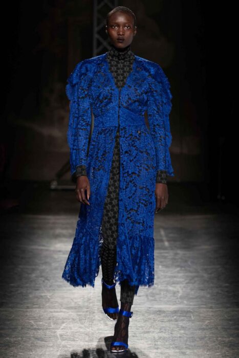 As peças vão de rendas misturadas, camisas sobrepostas até vestidos sensuais. A ideia é evocar uma vibração esportiva, associando a fluidez da seda e sua opulência a trajes de treino, com pérolas e cristais. Christelle aposta ainda em grafismos e looks geométricos, um dos outros destaques da coleção. A inspiração vem do icônico vestido Marilyn, reinterpretando com novos volumes e proporções, com tecidos inovadores, como um jacquard sem costura.