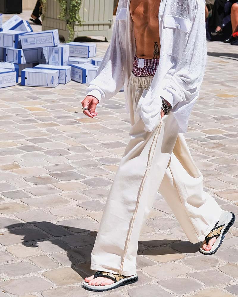 Desfile da marca C.R.E.O.L.E, com chinelos Kenner, Galeria Lafayette em Paris FW, em 2025