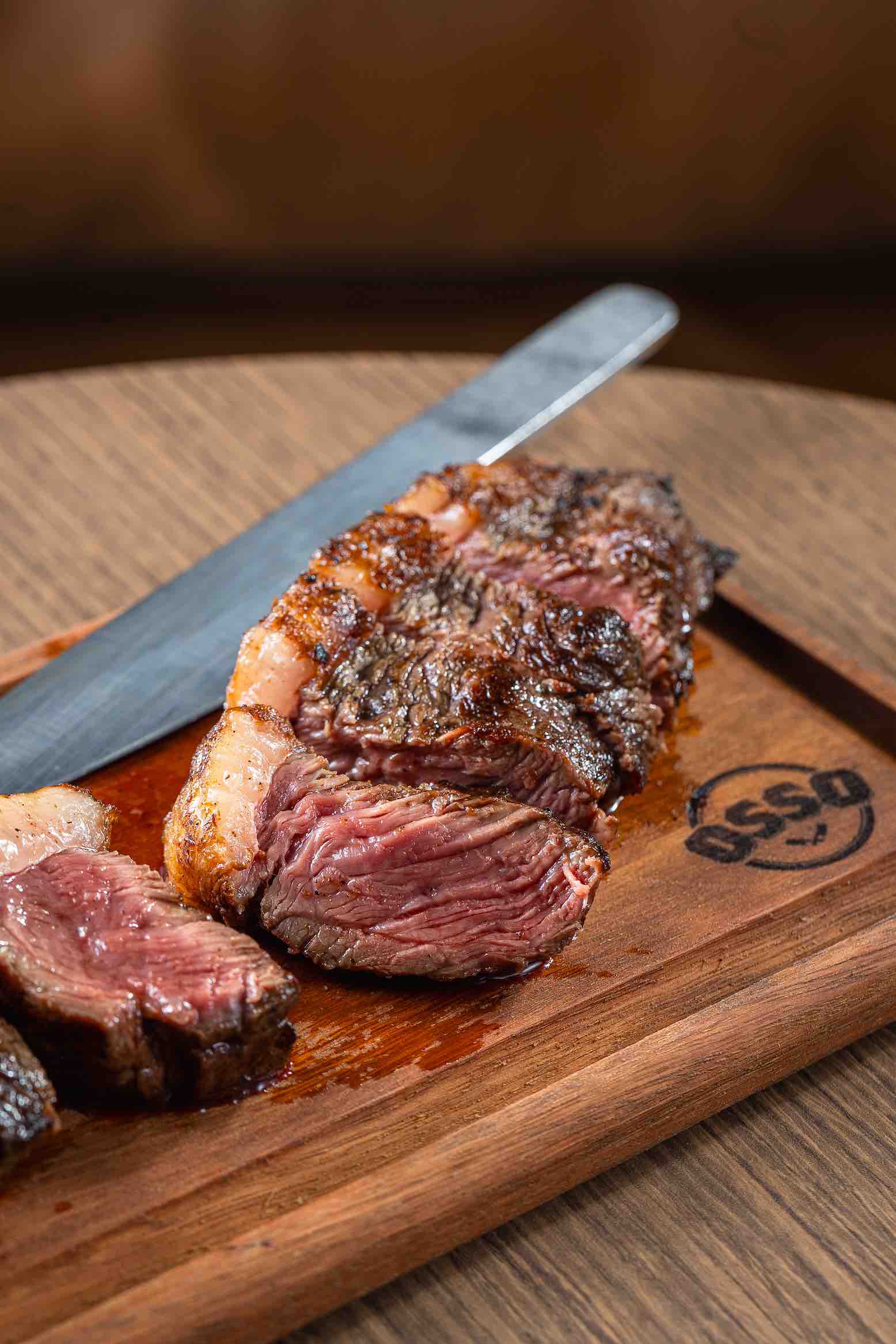 Localizada entre a cozinha e a câmara de maturação, a sala é isolada do salão principal e conta com uma mesa que acomoda até 12 pessoas — clientes que podem escolher entre duas modalidades de serviço: um menu degustação por R$450 por pessoa, com etapas que mostram as diferenças entre as raças, desde o Angus fresco até um Wagyu 100%; ou a liberdade de escolha dos pratos diretamente do menu regular do Osso, com consumação mínima de R$3.900.