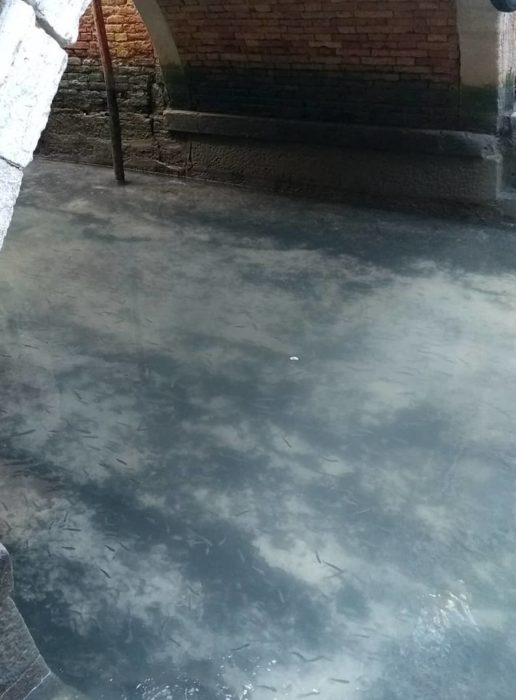 Os canais de Veneza estão curiosamente azuis e cristalinos. Pelas águas transparentes é possível ver cardumes de peixes. A explicação é que a ausência da movimentação de barcos e navios tornou a água, geralmente turva, mais límpida. Moradores da região testemunharam o acontecimento e compartilharam com o mundo nas redes sociais usando a hashtag #veneziapulita (Veneza limpa).