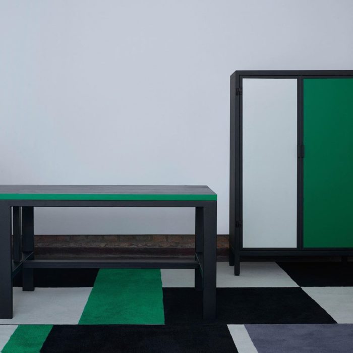Inspiradas em estudos de perspectiva, as linhas retas, ora vazadas, seguem padrões geométricos islâmicos. Além da elevada elaboração dos desenhos, as peças feitas por ele são todas produzidas em aço carbono com edição limitada. Houssein destaca que a confecção das peças é artesanal, feita para durar, e com a menor taxa de rejeitos possível. O padrão geométrico em verde, preto e branco também foi parar em tapetes. Toda a coleção está à venda na Micasa Vol C (rua Estados Unidos, 2109).