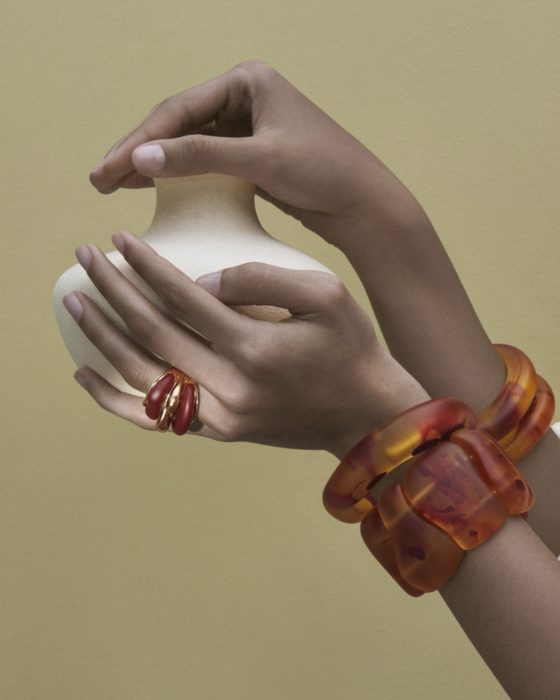 Desde o ano passado a influencer e produtora de conteúdo Silvia Braz se reúne com Luiza Setúbal para criar acessórios cheios de personalidade. A coleção de inverno da LOOL, marca de Luiza, leva a dobradinha de novo. O nome da collab é Riacho e tem a cara da marca: maxitamanhos, resina em acabamento fosco e de metal.
