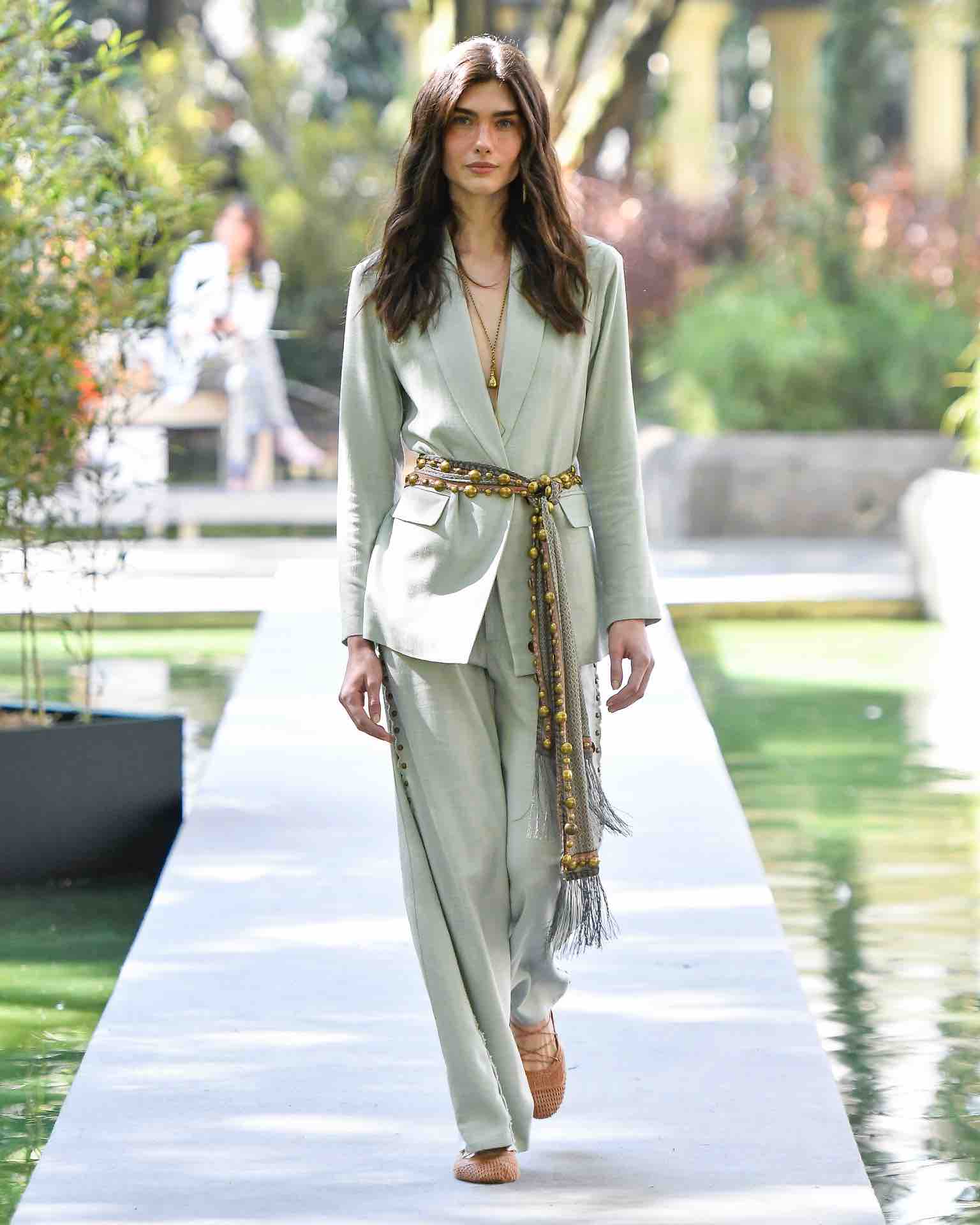 Os blazers conferem estrutura às peças esvoaçantes, desfiladas no jardim do palacete que pertenceu a Veridiana Valéria da Silva Prado, aristocrata e figura da alta-sociedade que marcou o cenário cultural da cidade no final do Império. A presença de bambus nos jardins da casa foi um atrativo para a marca. “Na coleção, temos bijuterias e acessórios de bambus. Além disso, queríamos um desfile de manhã, solar, porque a Maria Filó é muito essa mulher”, explica a diretora criativa.