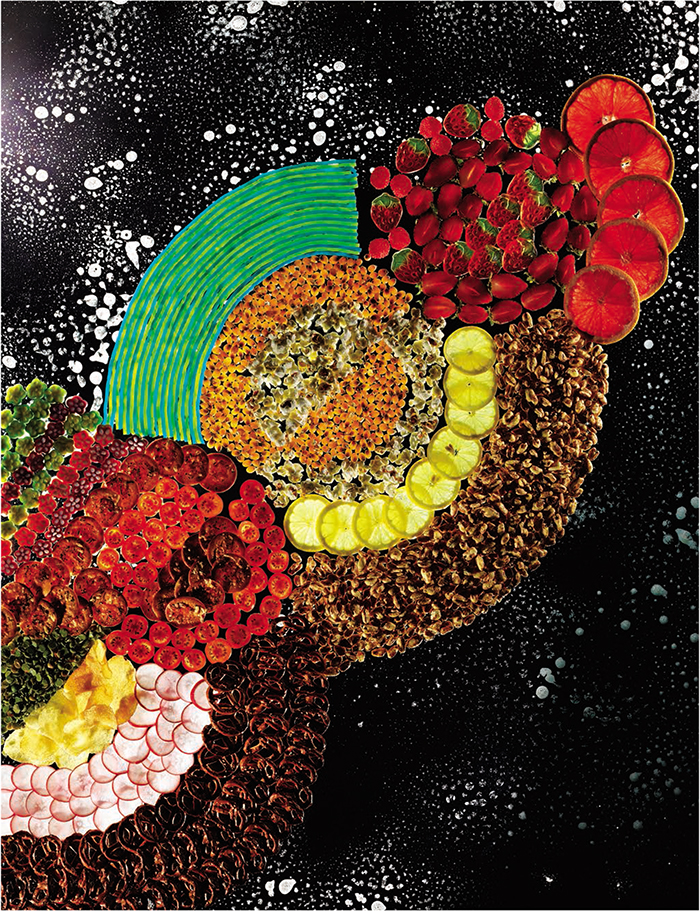 Quando é que a fotografia de comida se torna fotografia de arte? Será que ainda sou fotógrafa de comida quando tranço junto duas impressões fotográficas de escamas negras? Minha paleta de cores é feita de ingredientes do dia a dia: amarelo limão, laranja mandarim, tinta preta de choco. Isso faz de mim uma fotógrafa de comida?