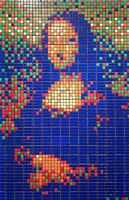 A Mona Lisa será leiloada em Paris no próximo dia 23. Calma, não é a obra de Leonardo da Vinci. O leilão é de uma outra obra, do artista de rua francês Invader, que em 2005 construiu uma escultura com 330 cubos mágicos formando a imagem da famosa pintura de da Vinci.