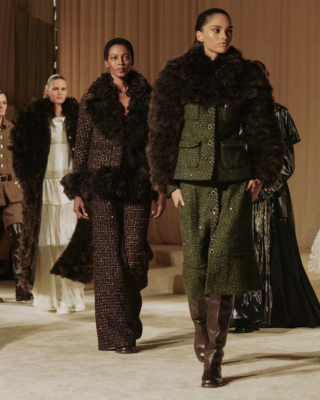 A maison é, provavelmente, a que mais possui códigos bem estabelecidos e reconhecíveis pelo público, como o matelassê, as correntes das bolsas 2.55, os tailleurs, as camélias, e por aí vai. Muitos desses marcaram presença na apresentação Couture, que celebrou a natureza e as caminhadas ao ar livre. Pense no interior bucólico do Reino Unido mimetizado na vestimenta, em tweeds de pele de carneiro e na fibra de espigas de trigo, essa aplicada em botões e bordados. Inclusive, o trigo também surge no tradicional vestido de noiva da Alta-Costura.