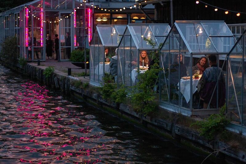O restaurante Mediamatic, em Amsterdã (Holanda), foi um dos pioneiros em soluções para o distanciamento social: algumas mesas agora ficam dentro de pequenas casas transparentes, que lembram adoráveis casinhas de boneca, ao longo do rio Oosterdok.