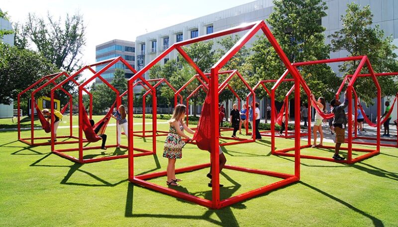 O projeto Mi casa, your casa tem história pra contar. A instalação foi inventada em 2014 como área interativa de um museu em Atlanta (EUA). Em 2017, passou por uma ressignificação para uma solução comunitária: serviu como abrigo para mexicanos que perderam seus lares após um terremoto. Nestes tempos de pandemia, as estruturas viraram item de utilidade social para as pessoas relaxarem ao ar livre e interagirem em uma distância segura.