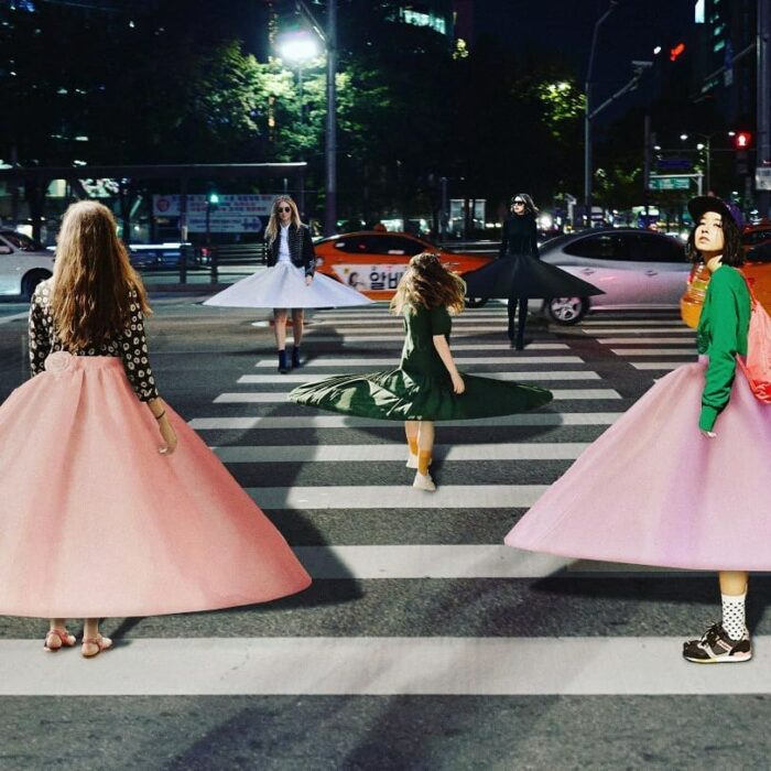 Os vestidos com dois metros de diâmetro, no estilo petticoat, da marca Multiply são no mínimo uma tendência curiosa. A inspiração para a peça é bem conhecida na moda: a medida faz referência aos vestidos de baile da época vitoriana.