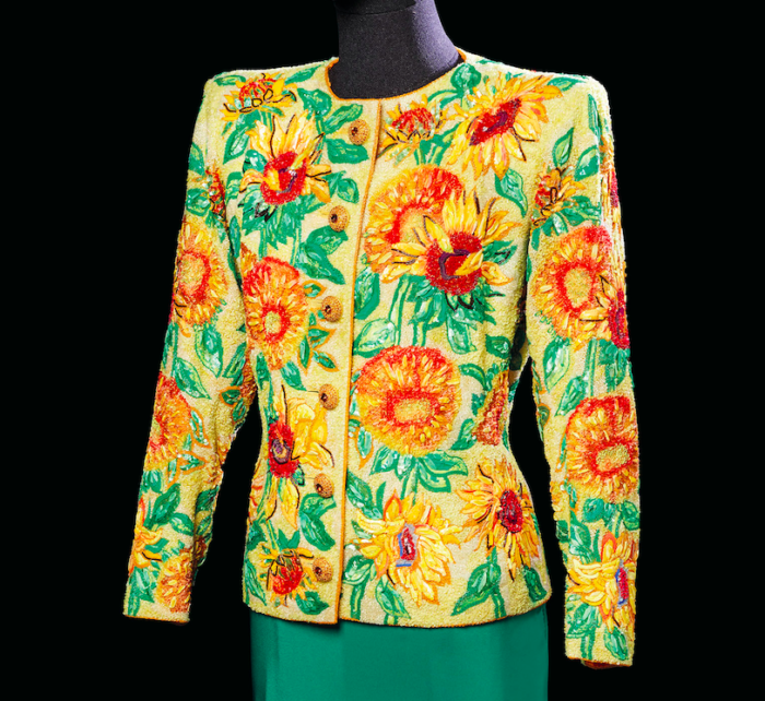 Um casaqueto da alta costura de Yves Saint Laurent, inspirado em Os Girassóis, de Van Gogh, foi arrematado por incríveis 382 mil euros (cerca de 1.782.000 reais) pela National Gallery de Victoria, que fica em Melbourne, na Austrália. O preço inicial era de 80 mil euros e o valor final é considerado recorde para uma roupa de designer.