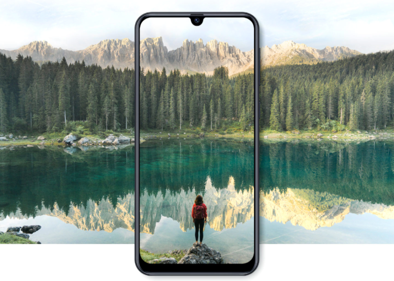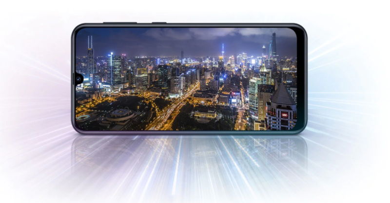 Disponível nas versões rosa, preto e azul, o design com Display Infinito de 6.4 polegadas é outro destaque do modelo. A ideia é que a imagem da tela do celular seja idêntica à imagem real.