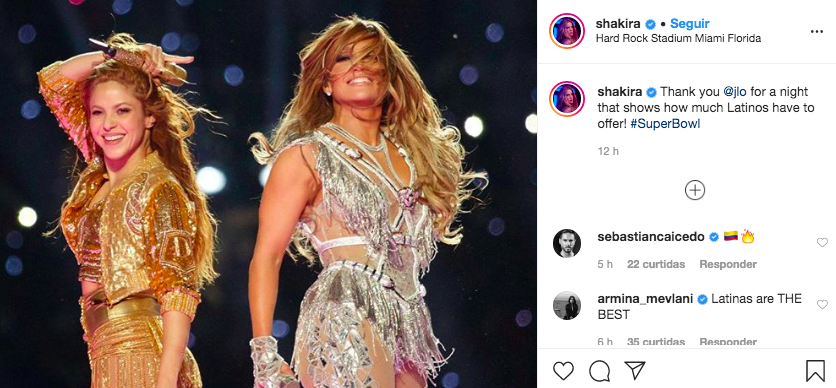 Shakira e Jennifer Lopez foram as primeiras mulheres latinas a serem a grande atração musical do intervalo do Super Bowl. Com muito brilho e fogos de artifícios, a noite de ontem (02/02) foi agitada pelas cantoras em diversos ritmos latinos, com direito a dança do ventre, hits históricos e até momento mãe e filha no Hard Rock Stadium, em Miami. O show foi superaplaudido e a imprensa especializada não deixou de registrar a importância do enfoque latino em momento pré-eleição presidencial norte-americana.