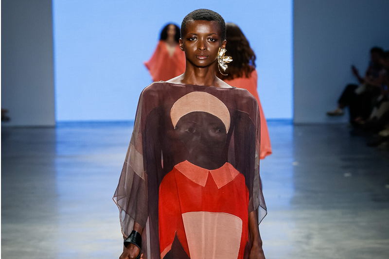 A diretora criativa de Cabo Verde, que mora no Brasil, refletiu sobre a Pangeia e os movimentos de escravização em uma coleção predominantemente preta, branca e vermelha